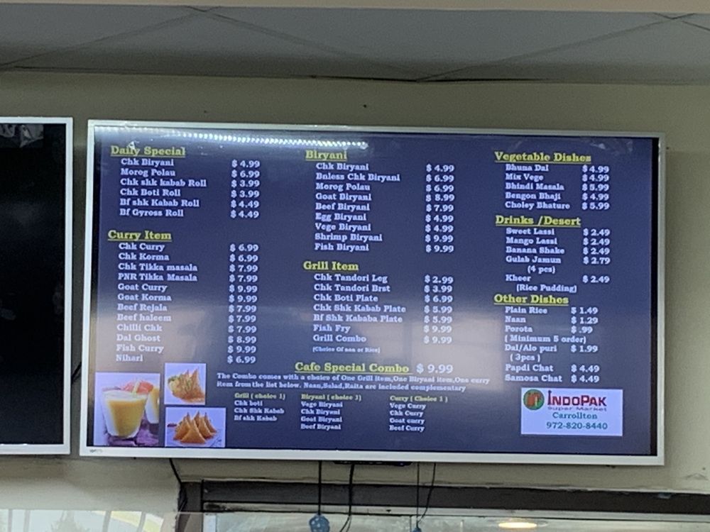 Welcome to Indo-Pak Kitchen Grill, a gem nestled inside the IndoPak Supermarket in Carrollton, TX. This culinary delight takes you on a flavorful journey through the vibrant cuisines of India and Pakistan. The menu is an extensive offering of authentic dishes that cater to both vegetarians and meat lovers.